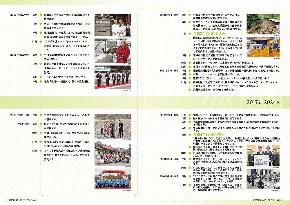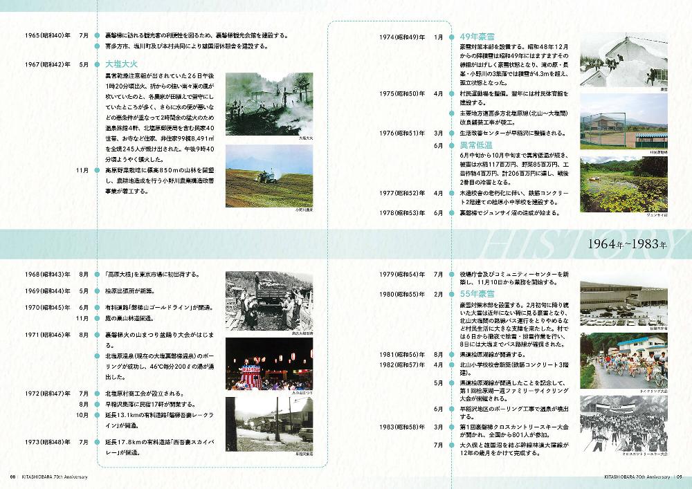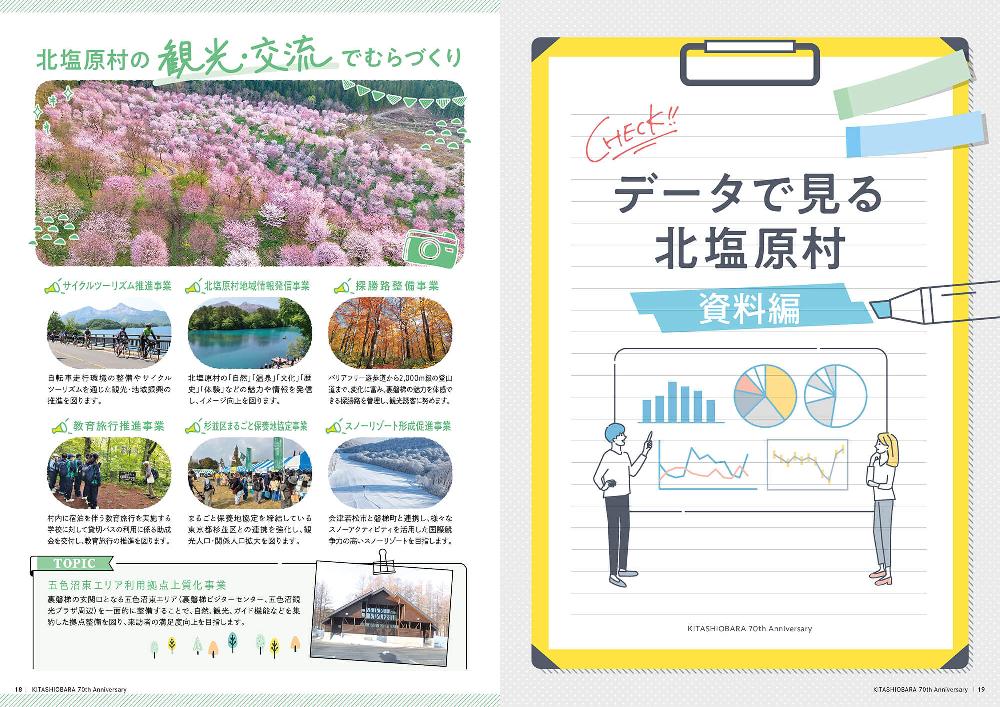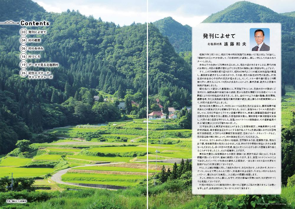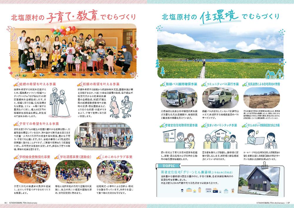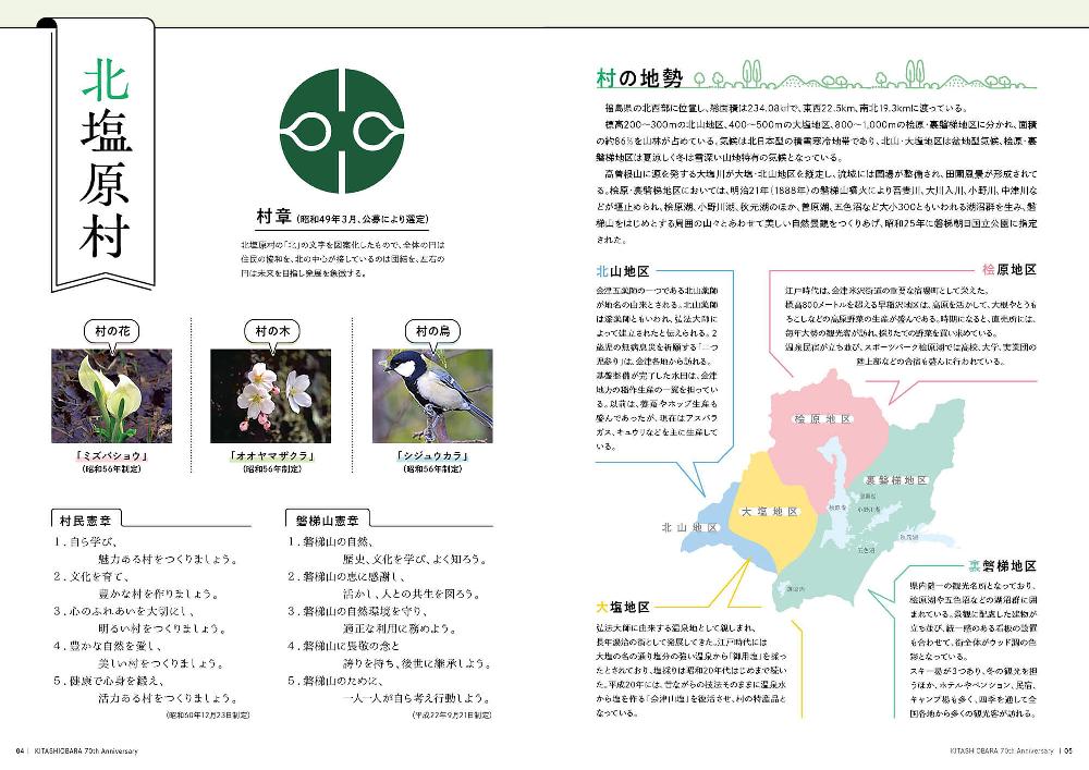 色味のある明るい紙面づくりにすることで、堅苦しくなりがちな「記念誌」を、パンフレットのようにも楽しみながら、自分の村への理解を深められるようデザインしました。